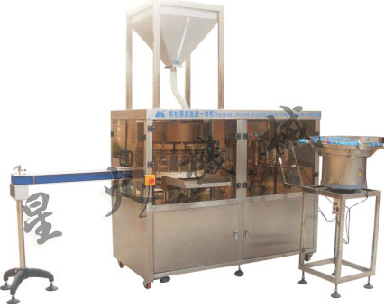 本機是將灌裝和旋蓋集為一體的自動生產線,適用于灌裝顆粒形狀的糖果,藥品,和一些化學物品,只要是顆粒狀態都可以適應本臺灌裝機,具備自動送瓶,自動漏料(被灌裝物),自動量取灌裝量,自動理瓶蓋,自動旋蓋等功能,主要部件均采用不銹鋼制作而成,完全符合藥品食品生產標準,本顆粒灌裝旋蓋一體機操作簡便,穩定性高,節省人工。