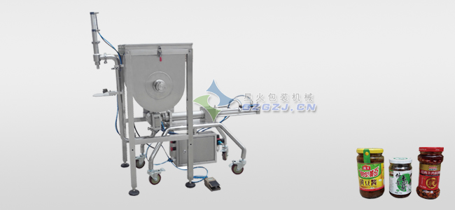 適用于高粘度、膏體、濃醬帶顆粒、液體進(jìn)行灌裝的理想設(shè)備。果醬、醬料、花生醬、番茄醬、豆瓣醬、辣椒醬、蝦醬、蘋果醬、沙拉醬、魚子醬、辣醬均可以灌裝。該系列為半自動活塞式膏體灌裝機(jī), 設(shè)計合理,機(jī)型小巧,操作方便,氣動部分均采用臺灣AirTac、SHAKO的氣動元件。 物料接觸部分均采用304不銹鋼材料制成,符合GMP要求。 灌裝量調(diào)節(jié)手柄、灌裝速度可任意調(diào)節(jié),灌裝精度高。 灌裝悶頭采用防滴漏、防拉絲及升降灌裝裝置。料斗帶有可調(diào)速攪拌裝置,使物料更均勻灌裝。